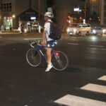 Nach einem kurzen Stopp in der Unterkunft, um zu duschen und meine Emails abzurufen, mache ich mich etwas zu spät auf nach Yotsuya sanchome. Dort gibt Natsu Nakajima eine open class. Auch wenn ich den Ort schon kenne, hätte ich doch gerne eine konkrete Adresse. Stattdessen steht im Email: „Take the museum exit (Ausgänge sind hier zumeist nummeriert), then Shinjukudirection, you see wing hotel, at the small chinese restaurant turn right, the building WAS an elementary school.“ Aber ich habe Glück und ein gutes Gedächtnis. Trotz leichter Verspätung muss ich einfach noch an der Kreuzung zwei Radfahrer fotografieren. (Siehe Jidensha-Parade)